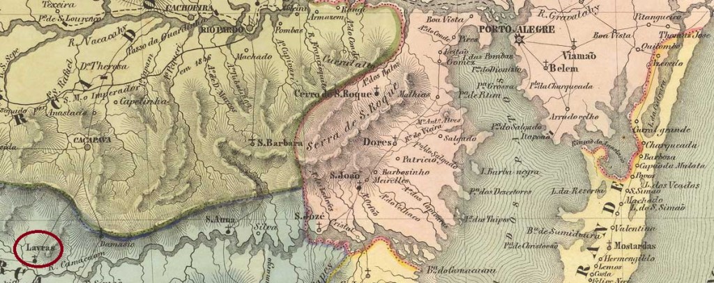 Im kaiserlichen Rio Grande do Sul gab es drei Postämter mit dem Anfangsbuchstaben L: Sant’Anna do Livramento (SRS-0530), Lagoa Vermelha (LRS-0205) und Santo Antonio de Lavras. Alle bekannten Poststempel von Livramento erwähnen Sant’Anna, und der fehlende Buchstabe V macht Lagoa Vermelha unwahrscheinlich. Daher wird LRS-0210a vorläufig Lavras zugeschrieben.