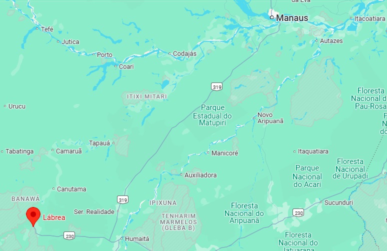 From May 1873, the town was the seat of the Freguesia de N. Sra. da Nazareth do Ituxi, belonged to the Município de Manaus and was located on the south bank of the Purus near the Ituxi estuary, 850 kilometres southwest of Manaus. Lábrea became a vila in May 1881 and a town in October 1894.