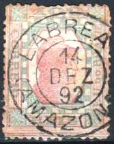 Der bisher älteste Poststempel ist hier LRJ-1075a, hier in einer Abbildung von Cícero Antonio Almeida (Carimbos Postais – século XIX, Rio de Janeiro, 1989) unter Nr. 764: