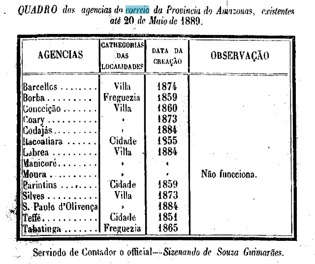 R. Koester schreibt in Carimbologia XXVI, dass es dort seit 1884 ein Postamt gab, aber der Bericht des Provinzpräsidenten von 1889 erwähnt die Gründung erst ein Jahr später.