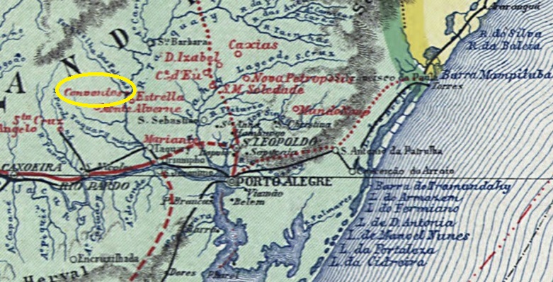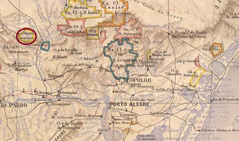 Since April 1874, this place was the parish of Conventos Velhos, which belonged to the Vila de Sto. Antonio da Estrella and was located on the west bank of the Taquari River, 120 kilometres northwest of the provincial capital Porto Alegre. In May 1881 it became the Freguesia de Santo Ignacio dos Conventos and in January 1891 the Vila e Município de Lajeado (as it is written today).