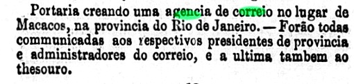 Two different dates have been found for the establishment of the local post office. One is March 1836, as Nova Monteiro writes in Administrações e Agencias Postaes do Brasil Imperio (Brasil Filatelico/RJ, 1934–1935; reprinted by SPP 1994–1999). The second date is 1861, as stated in the directory of imperial post offices (Tabella das Agencias do Correio do Imperio, Rio de Janeiro, 1885).