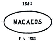 Vom Bahnhof Macacos kommt auch der stumme Stempel BPA 576, wie von James Dingler und Klerman W. Lopes in Mute Cancellations of the Brazil Empire / Carimbos Mudos do Brasil Império (Brazil Philatelic Association, Rio de Janeiro, 2000) vermerkt: