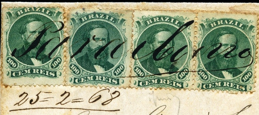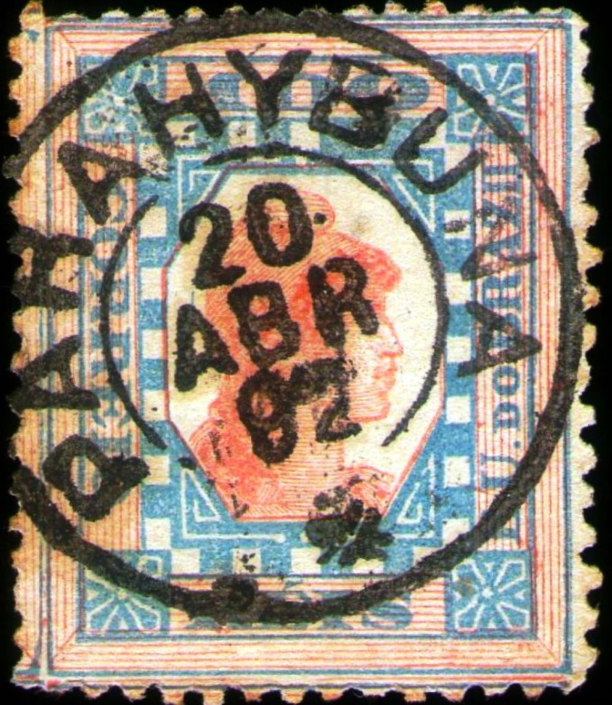 Um 1855 wurden die Briefmarken per Hand entwertet, wie die Abbildung aus R. Koesters Carimbologia XXIX zeigt: