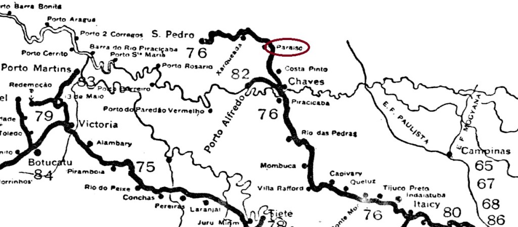 Der Bahnhof Paraíso wurde 1888 von der Eisenbahngesellschaft E. F. Ytuana eröffnet. Er lag am Nordufer des Ribeirão Fregadoli im Munizip Piracicaba, 180 Kilometer nordwestlich der Provinzhauptstadt São Paulo. Die Bahnlinie wechselte 1892 zur Cia. União Sorocabana e Ytuana und 1907 zur Sorocabana Railway. Von 1919 bis zur Stilllegung im Jahr 1966 gehörte sie der E.F. Sorocabana (estacoesferroviarias.com.br). Heute sind die Gleise entfernt und das Bahnhofsgebäude scheint als Wohnhaus genutzt zu werden.