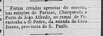 Wie die Presse aus Rio mitteilte, gab es am Bahnhof ein Postamt seit März 1888: