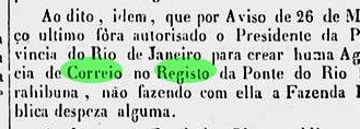 Laut Nova Monteiro in Administrações e Agencias Postaes do Brasil Imperio (Brasil Filatelico/RJ, 1934–1935; Nachdruck SPP 1994–1999) gab es dort seit September 1832 ein Postamt. Der bisher älteste Poststempel ist PRJ-0750a. Es gibt ihn auch in Rot und Orange. Er wurde sowohl von P. Ayres in „Catálogo de Carimbos Brasil-Império” (São Paulo, 1937, 1942) unter der Nr. 1853 als auch im RHM-Katalog unter P-RJ-23 erfasst.