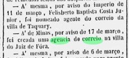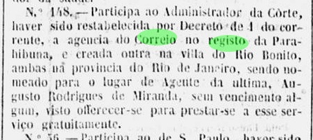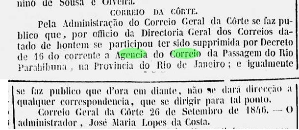 De acordo com a imprensa oficial imperial, havia uma agência dos correios no local desde março de 1840: