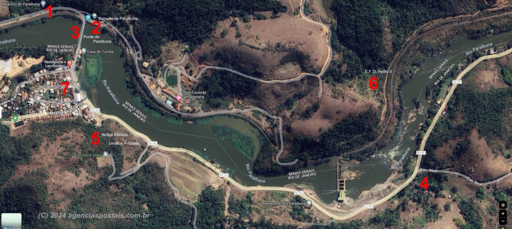 The situation became more complicated in September 1874 with the construction of the Parahybuna railway station of the E. F. D. Pedro II right next to the Registro. From 1875 onwards, the station also had its own post office, which presumably operated in parallel with the post office agency at the Registro for several years. The railway line was transferred to the E.F. Central do Brasil in 1889 and belonged to Rede Ferroviária Federal S.A. from 1975 until it was decommissioned in 1996 (estacoesferroviarias.com.br). Today, the tracks are still in place and the station building is to be used for residential purposes.