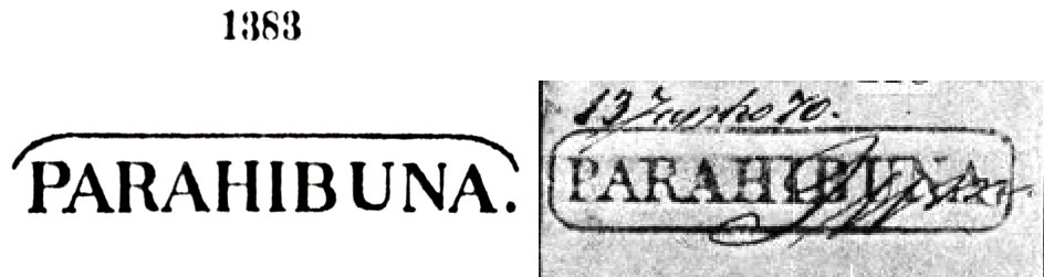 O carimbo postal mais antigo encontrado até o momento é o PBA-0935a (fig. da internet):