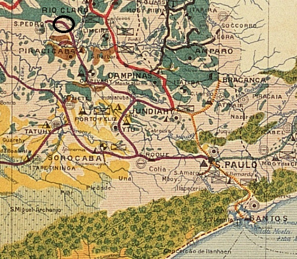 Sowohl Paula Sobrinho in História Postal de Minas Gerais (Belo Horizonte, 1997) als auch R. Koester (Carimbologia XXIX) sind sich einig, dass es dort seit Juni 1879 ein Postamt gab. Der bisher einzige kaiserliche Poststempel ist PMG-1810a (Abb.: Samml. Marcio Duarte), den es auch in Türkis gibt: