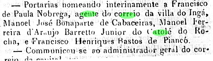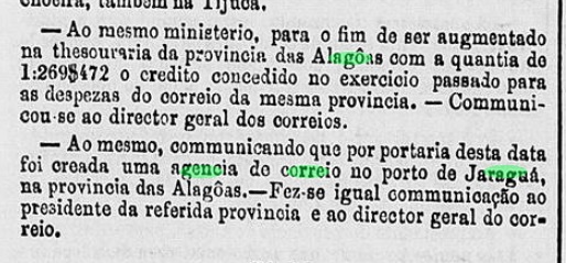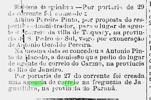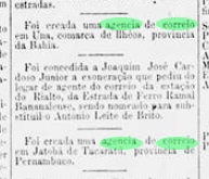 Segundo a imprensa regional, deveria haver uma agência dos correios no local desde junho de 1880: