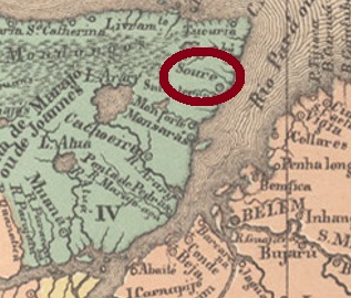 Soure (also spelled Soire) was again a settlement in the Grão-Pará area, named after a Portuguese community. Located in northeast of Marajó Island, just under 100 km north of the capital Belém do Pará. As early as June 1755, the village became a vila, which was then demoted to a freguesia in 1833, only to rise again as a vila in September 1847. Soure has been a town since September 1890.