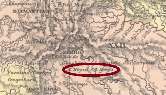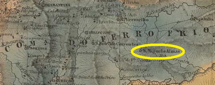 As Paula Sobrinho writes in Historia Postal de Minas Gerais (Belo Horizonte, 1997), there has been a post office there since March 1862. A postmark of the imperial period was found, unfortunately probably not the oldest. SMG-2540b (Coll. José A. Junges) appears in turquoise and carmine and is a double circle with the inscription S.P. DE MURIAHÉ at the top. The dates in the centre have so far been found for the period 1878-1891.