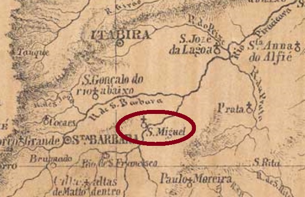 São Paulo de Muriahé was a district in the Município of Ubá from April 1841, located on the south bank of the Muriaé River, over 200 km southeast of the provincial capital Ouro Preto. In May 1855, the place rose to a villa and ten years later to a town, which since August 1911 has simply been called Muriaé.