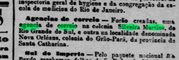 Ein Postamt gibt es dort seit Dezember 1881, wie man in der Presse aus Rio lesen kann:
