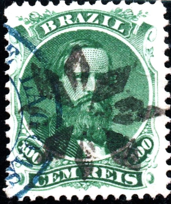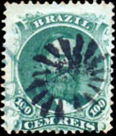 Zwei Bahnhofsstempel als Doppelkreis und eine „stumme“ Entwertung wurden gefunden. SMG-3120a ist ein Französischer Typus, den es auch in blau gibt und bereits durch Paulo Ayres in Catálogo de Carimbos Brasil-Império (S. Paulo, 1937, 1942) auf S. 118 abgebildet wurde: