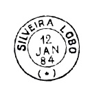 Etwa parallel dazu gab es SMG-3120b (Samml. José A. Junges): hier lautet die Inschrift SILVEIRA LOBO (ESTAÇÃO). Dieser Stempel kommt auch in blau und grün vor und hat innere Daten von 1883 bis 1888.