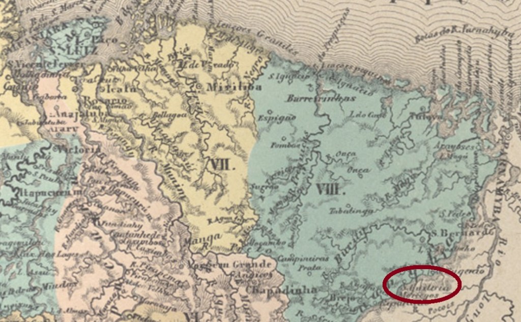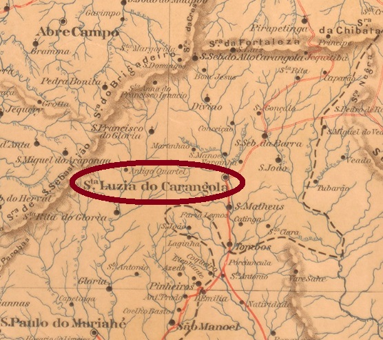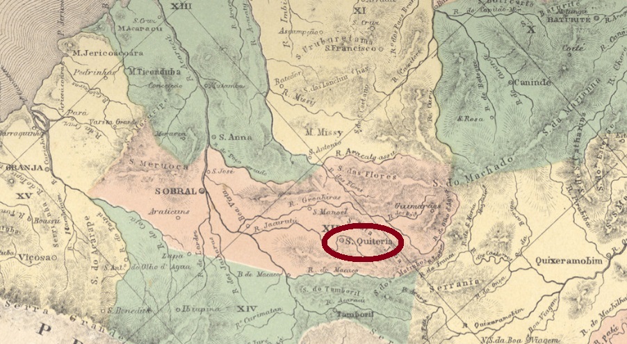 The Santa Quitéria of the Minas Gerais province was originally a district of the municipality of Sabará, created in July 1832 and situated ca. 150 km northwest of the ancient province capital Ouro Preto. In September 1901 it became an own municipality, and has since December 1943 the name Esmeraldas.