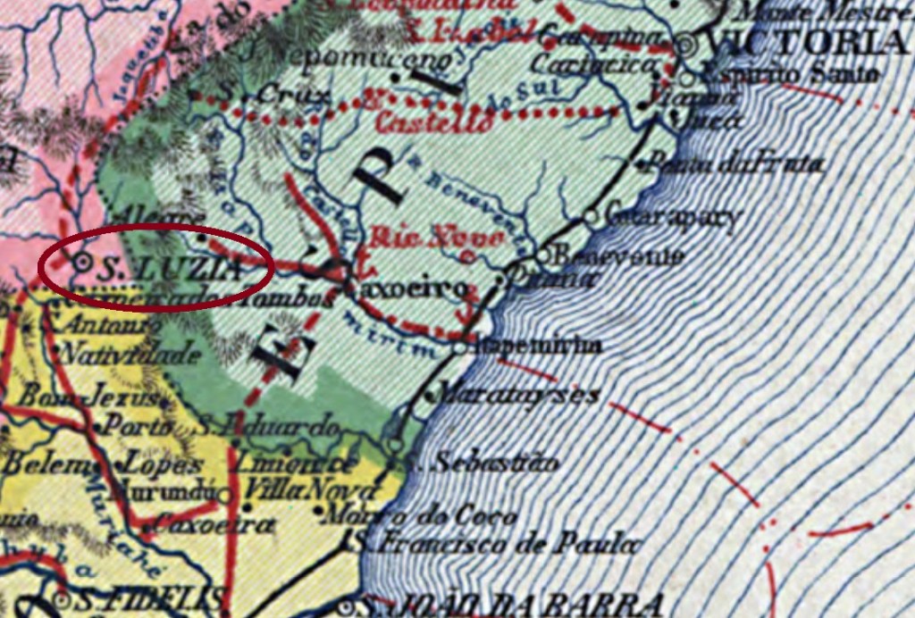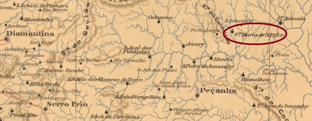 According to Nova Monteiro (Administrações e Agencias Postaes do Brasil Imperio, in Brasil Filatelico/RJ, 1934-5; Reprint SPP 1994-1999), the local post office was created in September 1845. Since both Paula Sobrinho (História Postal de Minas Gerais, Belo Horizonte, 1997) and the Imperial Mail Register (Tabella das Agencias do Correio do Imperio) of 1885 state the later date of March 1864, probably the agency was closed in-between.