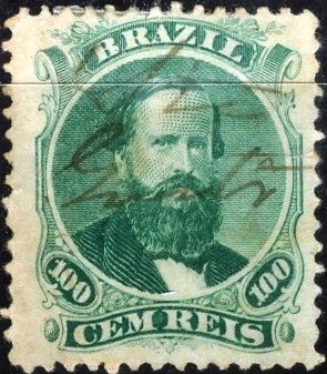 Es folgt eine handschriftliche Entwertung: SMG-2890b (Coll. Marcio Protzner) ist auf der ersten D. Pedro-Ausgabe (mit schwarzem Bart) von 1866 zu finden. Das Wort Quiteria wird gelegentlich ausgeschrieben.