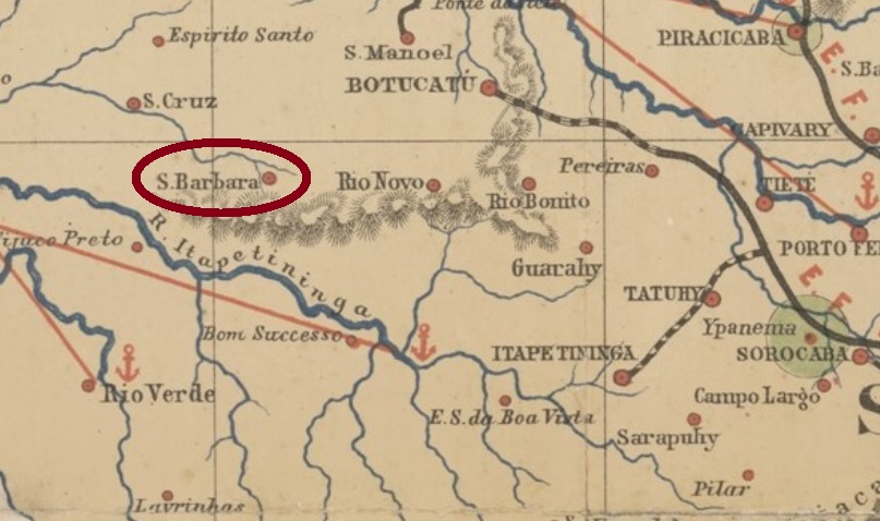 Santa Barbara do Rio Pardo is the ancient district of São Domingos, created in April 1858 in the municipality of Botucatu, near 300 km west of the province capital São Paulo. In June 1868 it switched to the municipality of Lençóis and acquired the political emancipation as the Villa de Santa Barbara in April 1876. In December 1906 it became a town, and since June 1978 it is called the municipality of Águas de Santa Bárbara.