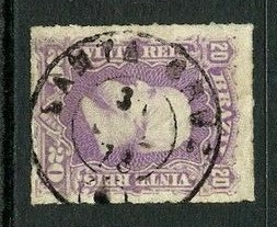 According to Nova Monteiro (Administrações e Agencias Postaes do Brasil Imperio, in Brasil Filatelico/RJ, 1934-5; Reprint SPP 1994-1999) the post office was created in August 1854. There is clearly a problem with the images of the earliest cancels from this village: Paulo Ayres (Catálogo de Carimbos Brasil- Império, S. Paulo, 1937, 1942) lists two of them under # 1451 and 1452. The first one was allegedly found from the 1878 emissions on (D. Pedro issue with white beard), the second from the 1866 emissions on (D. Pedro with black beard):