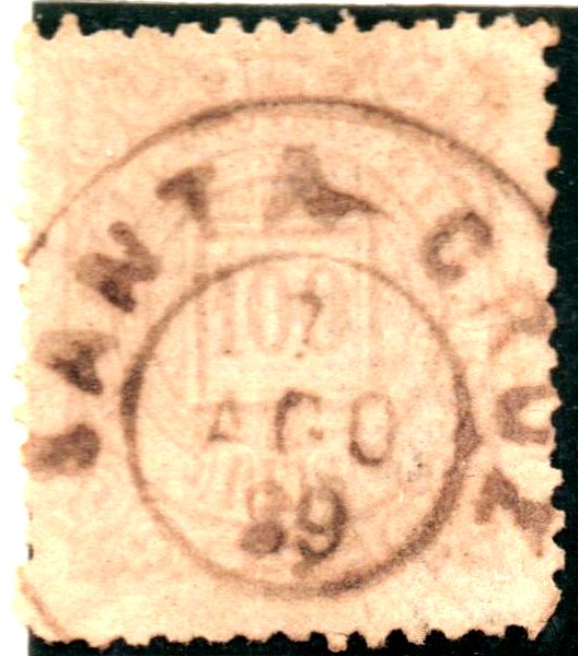 (Coll. José A. Junges). Legend SANTA CRUZ. Nothing below. Dated Aug 1889. / (Samml. José A. Junges). Legende SANTA CRUZ. Unten leer. Datiert Aug 1889.