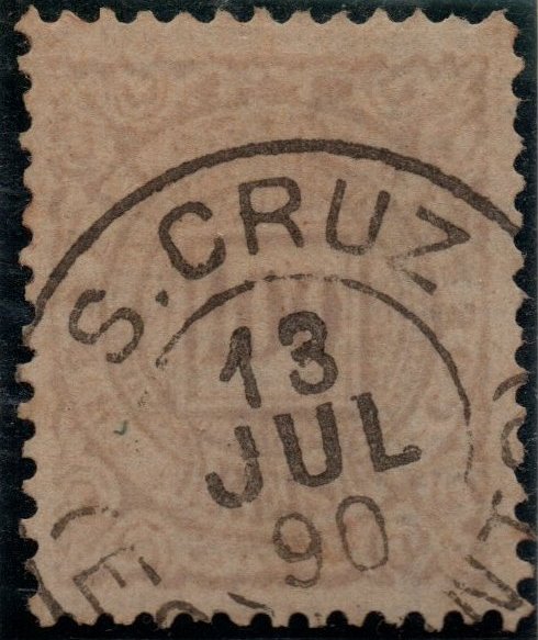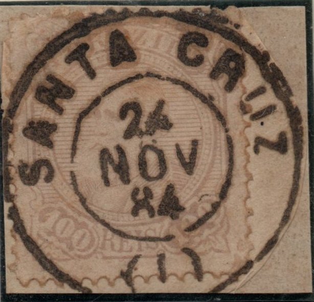 (Coll. Fuad Ferreira Fo.) Legend … DE S. CRUZ within frame. On 1876 issue. Not in P. Ayres / (Samml. Fuad Ferreira Fo.) Inschrift …DE S. CRUZ im Rahmen. Auf Marke von 1876. Nicht in P. Ayres.