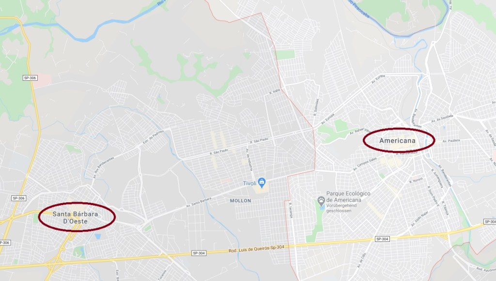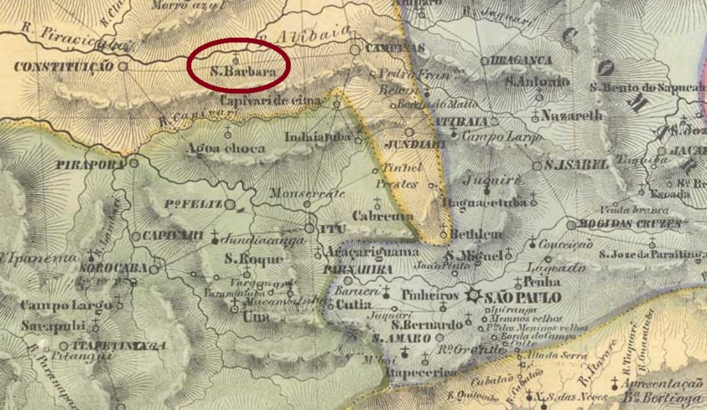 The freguesia of Santa Barbara de Macahubas was created in February 1842 in the former municipality of Constituição (the actual Piracicaba), ca. 140 km northwest of the province capital São Paulo. Two years long, between 1844 and 1846, it belonged to Campinas, before returning to Constituição. In June 1869 it ascended to a Villa, in December 1906, to a town, and since November 1944 it is called the municipality of Santa Bárbara d’Oeste.