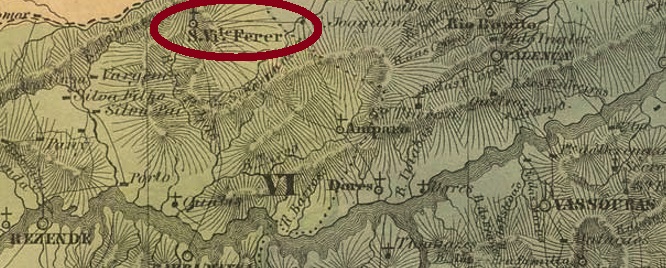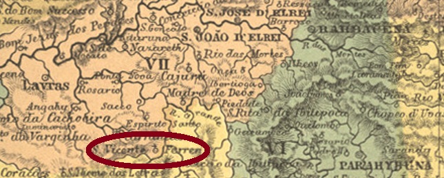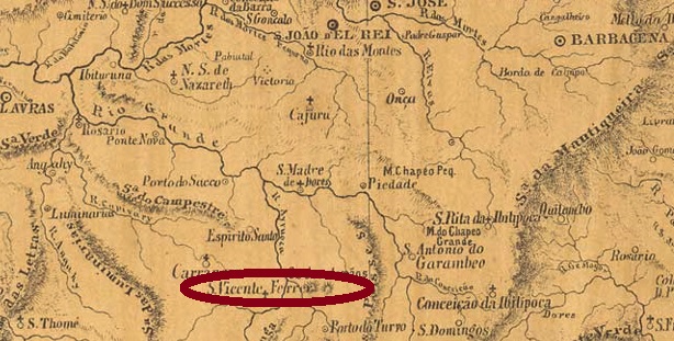 Wie Paula Sobrinho in História Postal de Minas Gerais (Belo Horizonte, 1997) schreibt, gibt es dort ein Postamt seit April 1873. Der erste Poststempel konnte bisher nicht zweifelsfrei identifiziert werden. SMG-2670b (Samml. Márcio Protzner) war sein Nachfolger: ein Doppelkreis mit den Inschriften S. VICENTE FERRER oben und (MINAS) unten. Das einzig bisher gesehene Exemplar trägt ein Datum von 1906 in der Mitte.