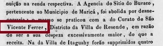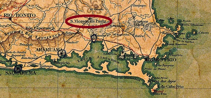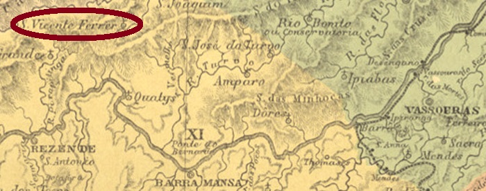 This fourth São Vicente Ferrer in Imperial Brazil was a district of Arraial de Campo Alegre (now Resende) from May 1843, located close to the provincial border with Minas Gerais, over 180 km northwest of the capital Rio de Janeiro. In December 1938, the place name changed to Fumaça. This actually means smoke, but here it probably means water vapour, rising either from the river or from the nearby mountainside.