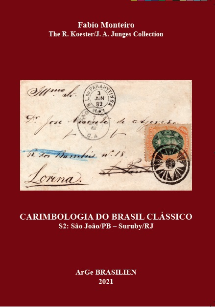 Following the 2019 and 2020 editions with the agencies from initial Q to São Jeronymo (RS), ArGe Brasilien is proud to present the next volume of Carimbologia do Brasil Clássico, a philatelic documentation project conceived and initiated by Reinhold Koester (1911-1994), which had been interrupted since 1992. According to the original editorial line, with the listing in alphabetical order of the Brazilian postal agencies from 1798 to approximately 1889, we present in this work stamps of the imperial postal agencies from São João (PB) to Suruby (RJ), in their original spelling.
