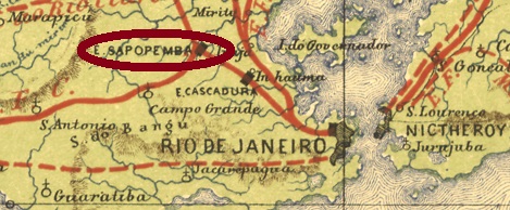 Paulo Novaes writes in agenciaspostais.com.br that there has been a station post office on place since August 1865. Two postmarks were found for the 19th century. SMN-2255a (Coll. José A. Junges) is a double ellipse with the inscriptions A. DO C. above and SAPOPEMBA below. Found on a D. Pedro issue from 1866. SMN-2255b (Coll. José A. Junges) is your double circle with the inscription SAPOPEMBA above and an 8-pointed star below. Dated in the centre from 1894 to 1895, so far.