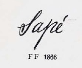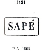Noch älter scheint die Variante SSP-1350a (Samml. José A. Junges) zu sein, die einen Punkt nach dem E zeigt und dadurch einen etwas größeren Rahmen hat. Hier gehen die Daten sogar bis mindestens 1876. Später kam der Stempel im Doppelkreis SSP-1350c (Samml. José A. Junges) dazu: hier liest man nur die Inschrift SAPÉ oben, und die Daten (v. 1881 bis 1887) in der Mitte.