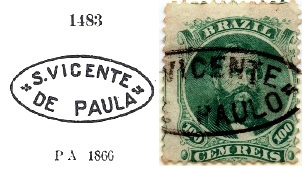 Paulo Novaes schreibt auf seiner Website agenciaspostais.com.br, dass es dort seit Dezember 1876 ein Postamt gibt. Es ist daher etwas verwunderlich, dass es so viele Stempel mit der Dom-Pedro-Ausgabe von 1866 gibt, wenn die folgende Ausgabe aus 1876 bei der Agentureröffnung bereits erhältlich war. Wie es dem auch sei, der älteste Stempel ist SRJ-1510a, der durch Paulo Ayres in seinem Catálogo de Carimbos Brasil-Império (S. Paulo, 1937, 1942) unter Nr. 1483 mit PAULA statt eigentlich PAULO) zu sehen ist:
