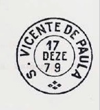 The postal agency did not reopen until 1872, as can be read in the Imperial Mail Register (Tabella das Agencias do Correio do Imperio, Rio de Janeiro, 1885). The earliest postmark so far is SRJ-1515b (Coll. Paulo Daróz): a double circle with the inscriptions S. VICENTE FERRER above and (REZENDE) below. The dates in the middle have so far been found for the period 1894-1906.