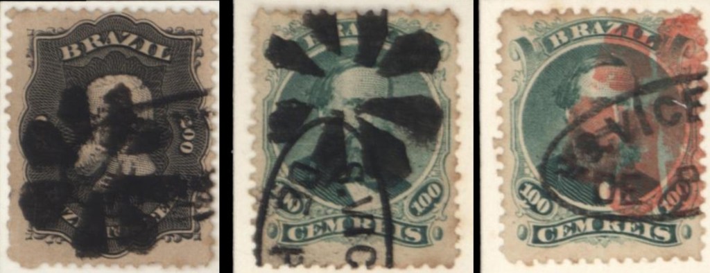 Paulo Ayres (op.cit. S.147) zeigt uns noch eine handschriftliche Entwertung aus Sapé, und aus der Junges’ Sammlung kennen wir auch einen stummen Stempel: