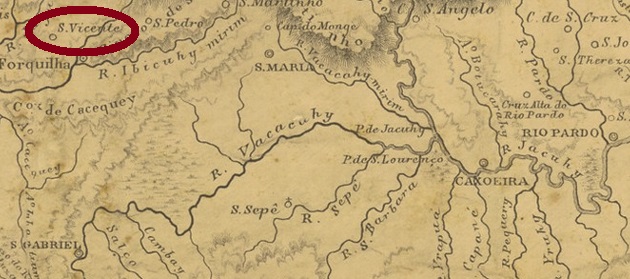 Allerdings wurde die Agentur womöglich bald wieder geschlossen, denn sie ist im kaiserlichen Postführer (Guia Postal do Império do Brazil, Rio de Janeiro, 1880) nicht zu finden. Lediglich ein Ortsstempel und eine stumme Entwertung wurden gefunden. SSP-1245a (Samml. Fuad Ferreira Fo.) ist ein französischer Typus: im Doppelkreis liest man oben SÃO VICENTE (mit Tilde zwischen A und O), unten ist der typische Stern zwischen Klammern. Daten bis 1901 vorhanden.
