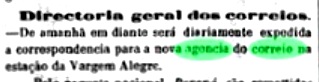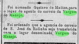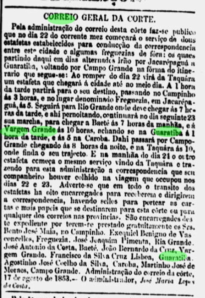 Wie Nova Monteiro in Administrações e Agencias Postaes do Brasil Imperio (Brasil Filatelico/RJ, 1934-5; Reprint SPP 1994-1999) schreibt, gab es dort ein Postamt seit September 1832. Der älteste Poststempel ist wohl VRJ-2355a, der ab 1832 bis mindestens 1843 verwendet wurde, auch in sepia vorkommt und bereits sowohl durch Paulo Ayres in Catálogo de Carimbos Brasil-Império, (S. Paulo, 1937, 1942) unter Nr. 1530 als auch durch den RHM-Katalog unter P-RJ-46 vorgestellt wurde: