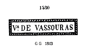 Es folgten zwei Poststempel als Doppelkreise. VRJ-0991b (Samml. José A. Junges) hat oben die Inschrift EST. DE VASSOURAS, unten ist ein Ornament in Raute zu sehen, das aus vier kleinen Rauten gebildet wird. Die inneren Daten gehen bisher von 1888 bis 1890.VRJ-0991c wurde bereits gezeigt von Cicero A. Almeida in Carimbos Postais – século XIX (Rio de Janeiro, 1989) unter der Nr. MPT 800: