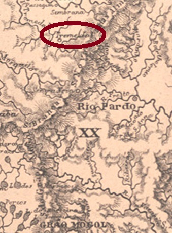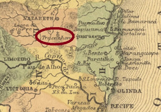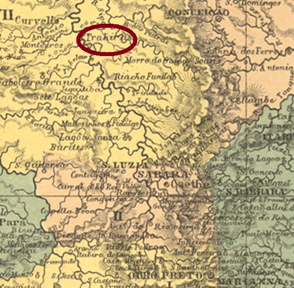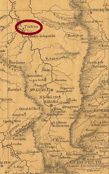 Eine Barreira war eine Schrankstelle auf Fernstraßen, wo Steuer oder Maut eingetrieben wurde. Die Barreira das Tres Barras lag, wie uns R. Koester in Carimbologia III erzählt, an der Mündung von drei Bächen (Turvo, Agua Comprida und Pirapetinga) in den Bananal-Fluss. Tres Barras hieß auch die 500 Meter entfernte Fazenda, die heute als Hotel fungiert. Bananal hieß auch die zuständige Gemeinde für diesen Ort, 320 km nordöstlich von der Provinzhauptstadt São Paulo gelegen.