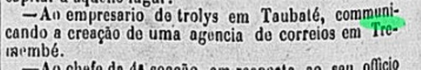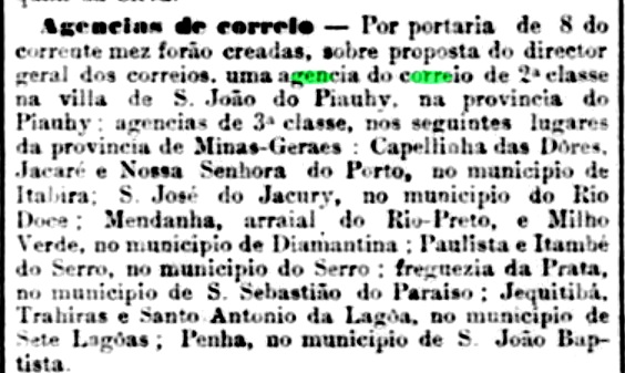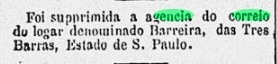 Ein Postamt an dieser Barreira entstand im März 1876, wie die Presse aus Rio berichtet: