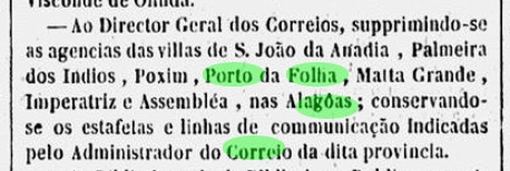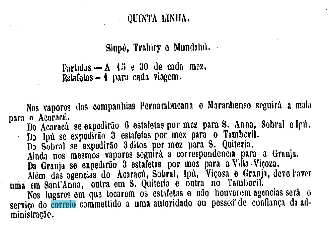 A post office at this barreira was created in March 1876, as reported by the Rio press: