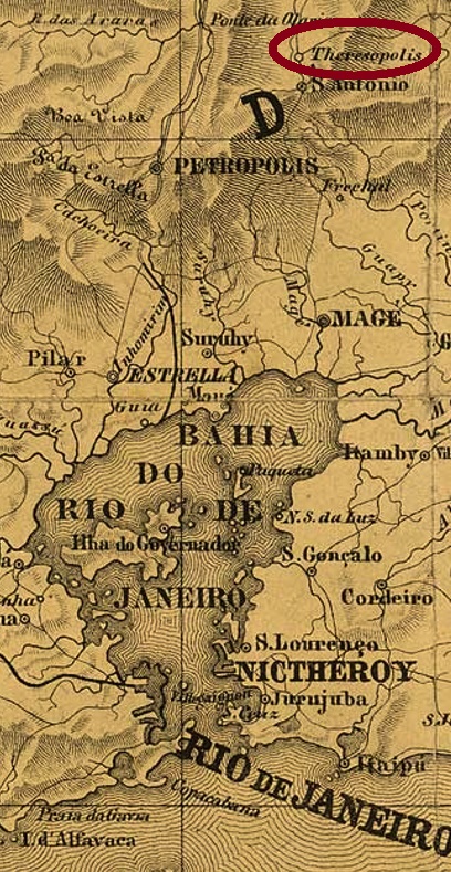 This village became the district of Santo Antonio do Paquequer near Magé in October 1855 and was located on the Paquequer River, barely 100 km north of the capital Rio de Janeiro. Around this time, the place name Theresopolis came into use – a homage to Empress Theresa Christina (1822-1889), the wife of D. Pedro II – although the official change of place name did not take place until May 1892 and thus already in the Republic. The place had already been a vila since July 1891 and became a town in January 1893.