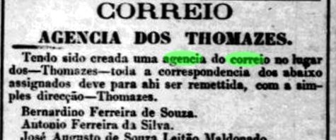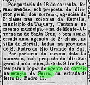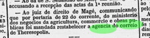Das lokale Postamt entstand im Oktober 1882, wie die Presse aus Rio berichtete: