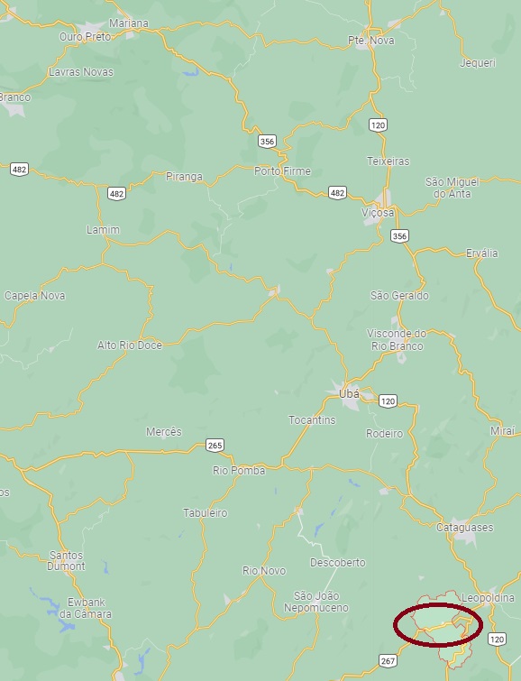 This village was a district of Leopoldina since October 1881, located below the Serra do Rio Pardo, almost 270 km southeast of the provincial capital Ouro Preto. And it has remained so until today, also in terms of population (about 2,000 inhabitants).