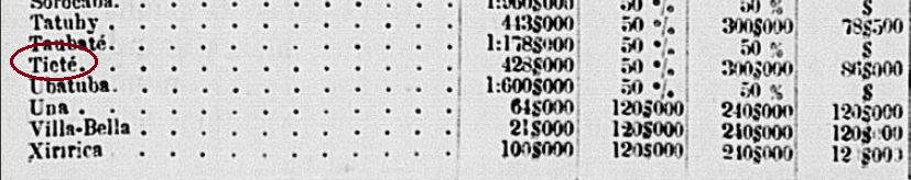 Ende 1882 eröffnete die E.F. Sorocabana Bahngesellschaft einen Bahnhof in Tieté, der die Endstation der gleichnamigen Abzweigung sein sollte. Bisher wurde kein Bahnhofspostamt von dort gefunden, dafür aber zwei Poststempel für den Postbetrieb im Zug. TSP-1426a (Samml. José A. Junges) ist ein Doppelkreis mit der Inschrift TIETÉ oben und einem Ornament in Raute unten, das aus vier kleinen Rauten gebildet wird. Daten in der Mitte: 1885-1888ff. Danach kam TSP-1426b (Samml. José A. Junges). In diesem Doppelkreis lautet die obige Inschrift nun CORREIO AMBULANTE DO TIETE, das Ornament unten ist durch zwei Doppelstriche gebildet, die sich in X kreuzen. Datiert 1890 in der Mitte.