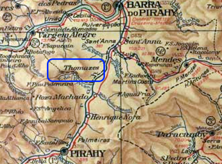 The Arraial (settlement) of S. João Baptista e S. José dos Thomazes was established around 1830 in the Município of Pirahy and was located close to the left bank of the Pirahy River, about 110 km northwest of the capital Rio de Janeiro. The name is said to remember the first large landowning family, Thomaz da Silva. The short prosperity of this village came to an end at the beginning of the 20th century with the decadence of coffee cultivation in the province of Rio de Janeiro. Today the village has disappeared, its original territory now belonging to the Santanésia district near Piraí.