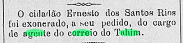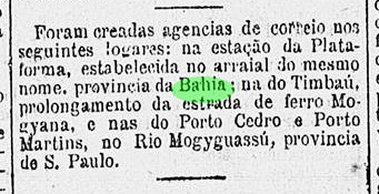 Das örtliche Postamt entstand im Juni 1883, wie aus der Rio-Presse entnommen wird: